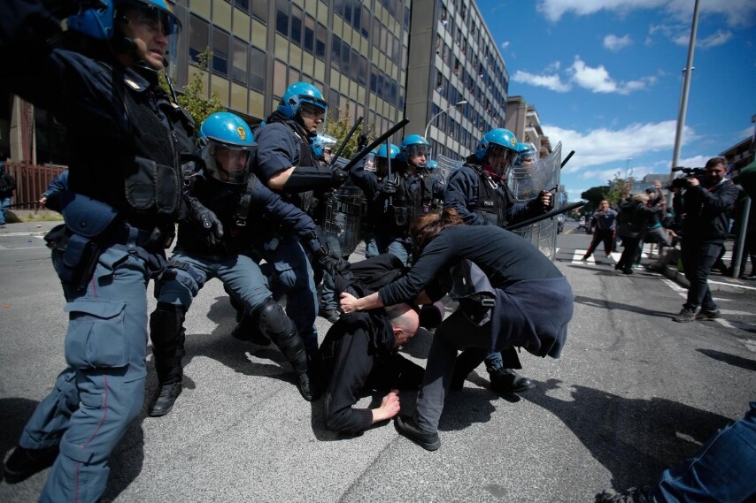 • Scontri a Roma, otto poliziotti contro un manifestante