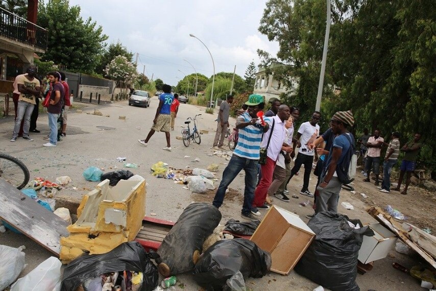 Alta tensione da domenica 13 luglio a Castel Volturno, nel Casertano, dove decine di immigrati africani sono scesi in strada dopo il ferimento a colpi d'arma da fuoco di due ragazzi della Costa d'Avorio scatenando una vera e propria rivolta, con auto date alle fiamme e un appartamento incendiato. I responsabili del ferimento, padre e figlio, sono stati fermati. / FOTO ALESSIO VISCARDI FANPAGE.IT
