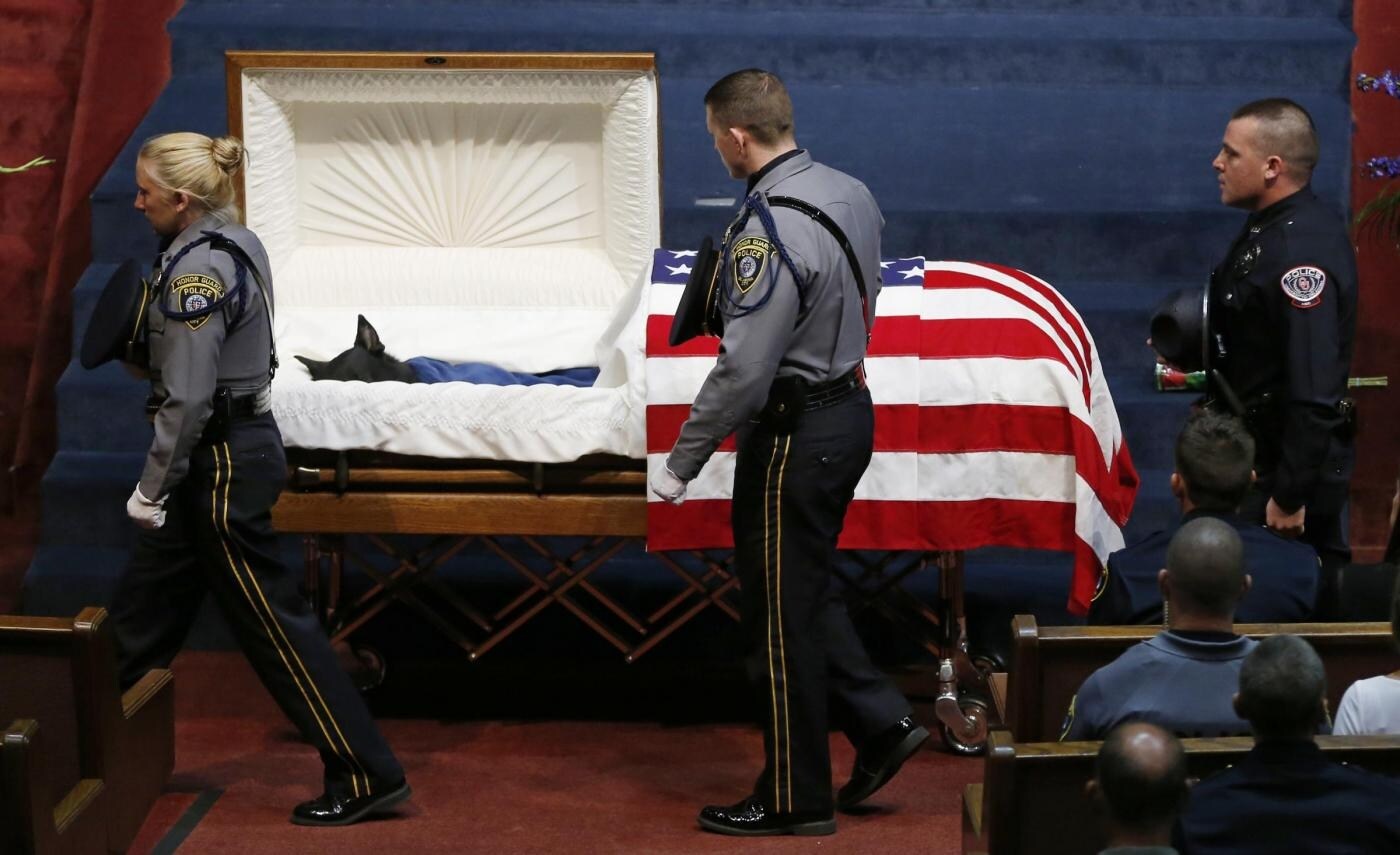 Funerale solenne per Kye, cane poliziotto morto per salvare il collega agente