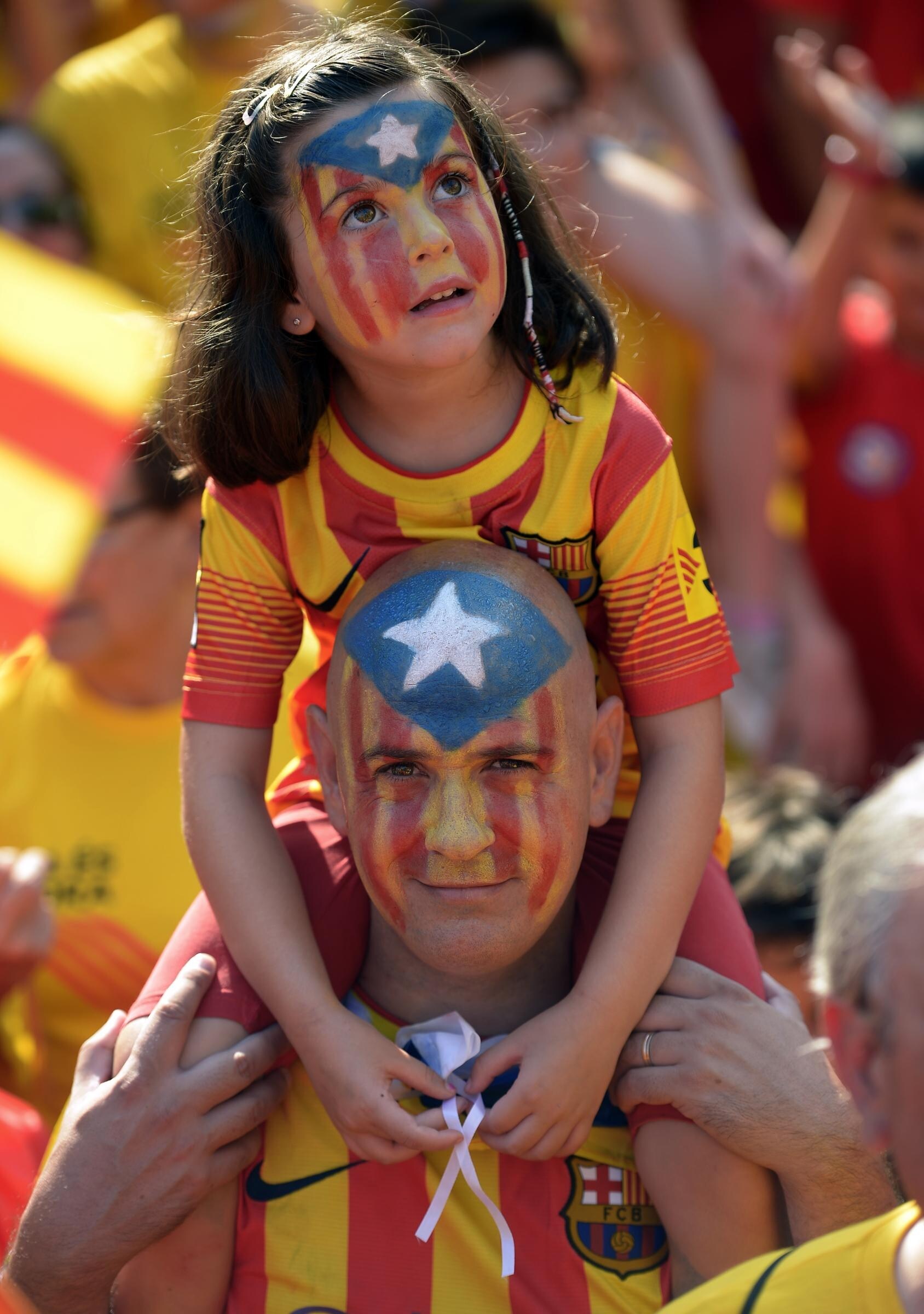 Centinaia di migliaia di catalani si sono riuniti nelle principali strade di Barcellona in occasione delle celebrazioni della “Diada”, la giornata di festa della Catalogna che cade ogni 11 settembre. Come ogni anno sono tantissime le bandiere, gli striscioni e le magliette con i colori della bandiera catalana. I catalani hanno manifestato a sostegno del referendum consultivo che potrebbe tenersi il prossimo 9 novembre e che riguarda l’indipendenza della Catalogna dal resto della Spagna.