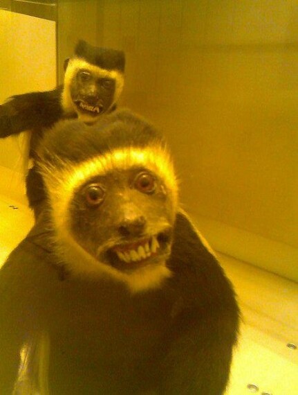 Queste immagini sono state raccolte dalla pagina Facebook "Badly Stuffed Animals" (animali imbalsamati male). Ritraggono animali sottoposti alla tassidermia per la loro conservazione nel tempo. Cani, gatti,scimmie, orsi, canguri, squali immortalati in situazioni bizzarre. Immagini che hanno scatenato le proteste degli animalisti nei confronti della tassidermia.