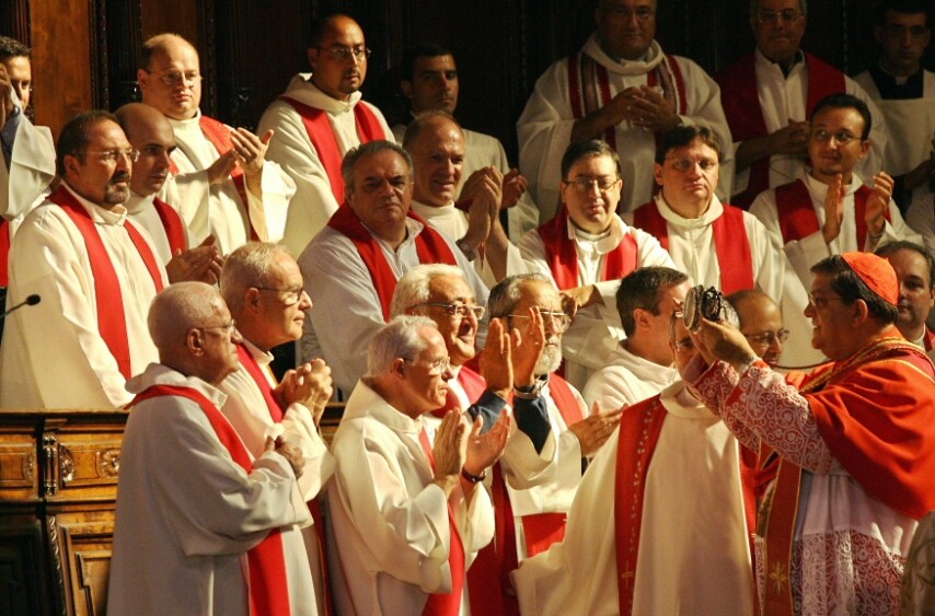 • Il cardinale Sepe con l'ampolla contenente il sangue