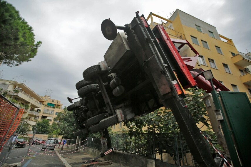 Roma, in via Rocca Sinibalda una gru si ribalta