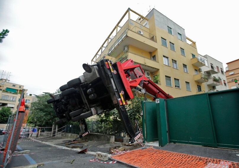 Roma, in via Rocca Sinibalda una gru si ribalta