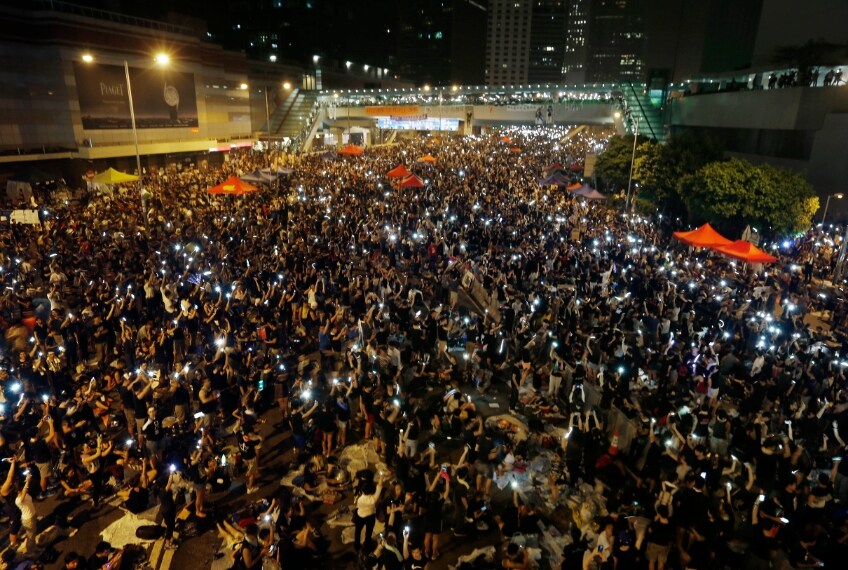 Hong Kong, la piazza si illumina con i telefonini dei manifestanti