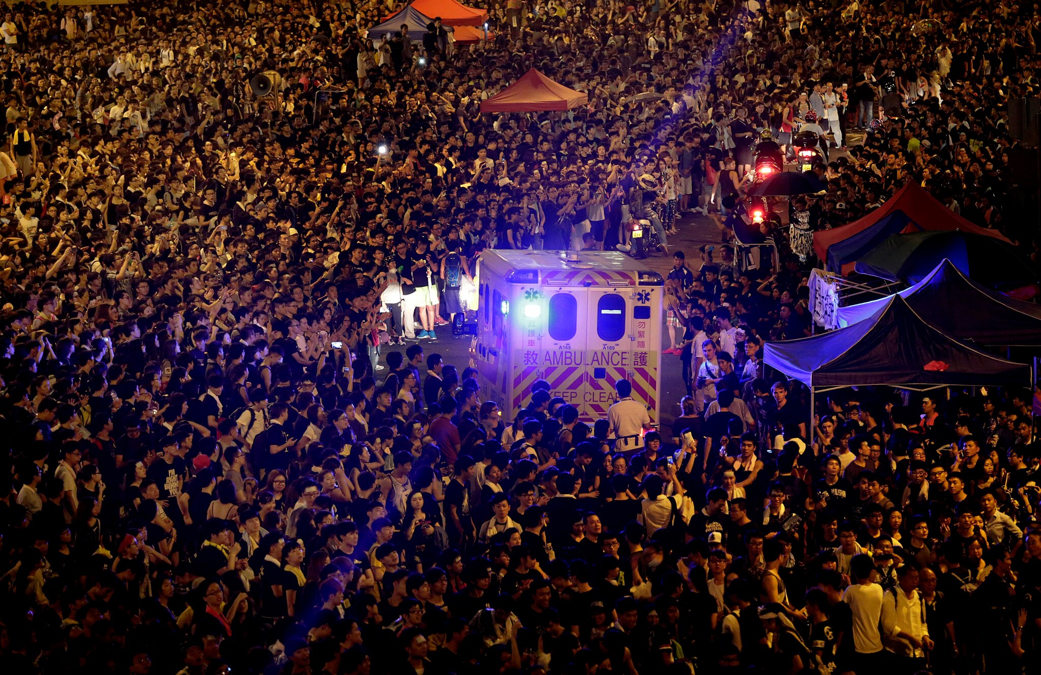 Hong Kong, la piazza si illumina con i telefonini dei manifestanti