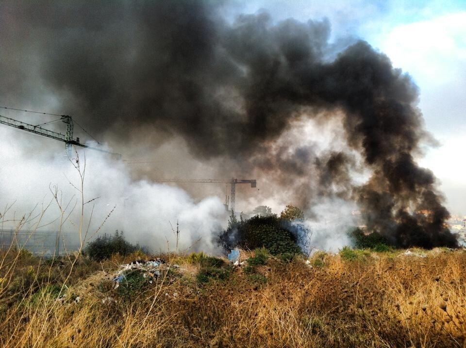 Le fiamme sono divampate stamattina intorno alle sette nell'area che qualche tempo fa ospitava il campo rom nei pressi dell'ospedale Loreto Mare e del mercato del pesce, in via Amerigo Vespucci. Non è ancora chiaro se l'incendio sia di natura dolosa. (Foto di Peppe Pace).