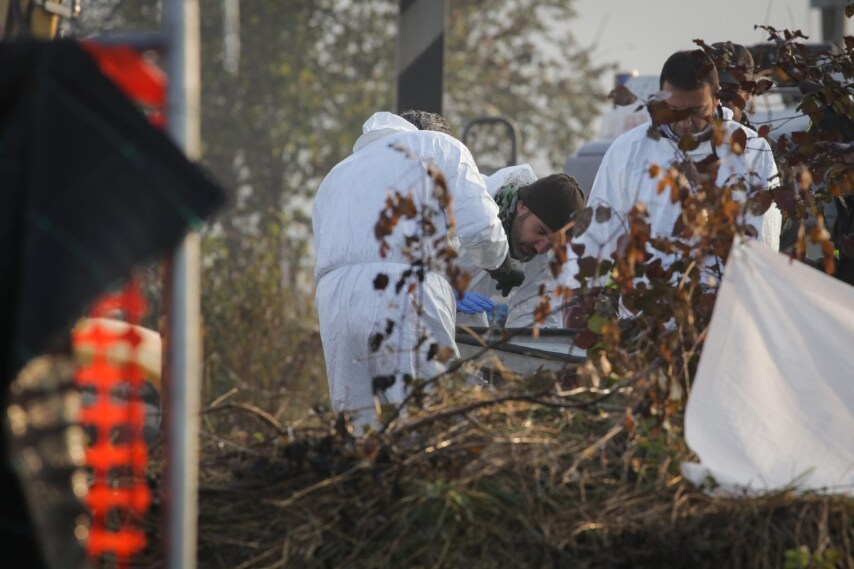 Il ritrovamento del cadavere di Elena Ceste in un fosso a poche centinaia di metri dalla sua casa. Nelle foto i Carabinieri e la scientifica sul luogo del ritrovamento utilizzano setacci per cercare resti del corpo.
