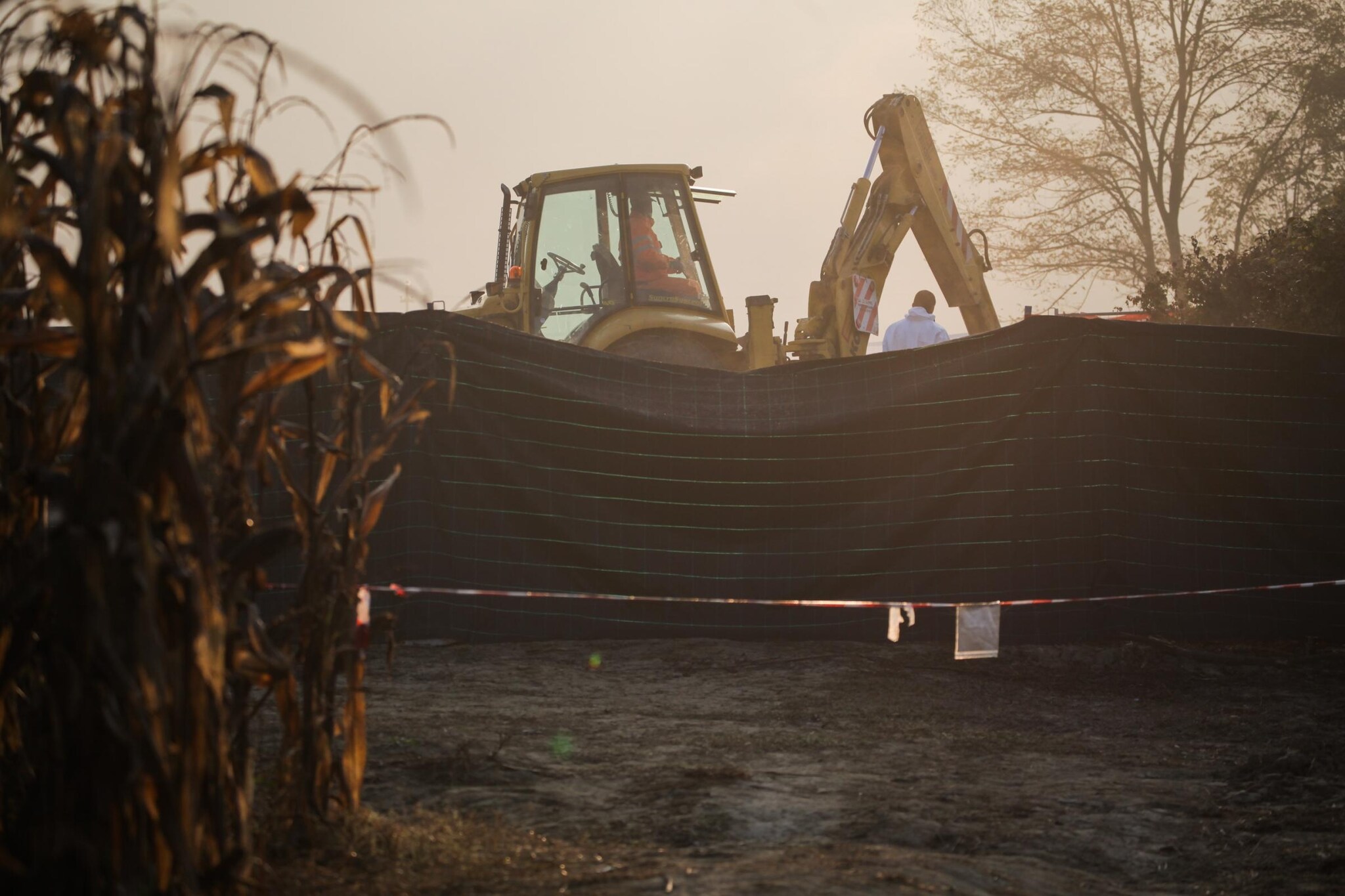 Il ritrovamento del cadavere di Elena Ceste in un fosso a poche centinaia di metri dalla sua casa. Nelle foto i Carabinieri e la scientifica sul luogo del ritrovamento utilizzano setacci per cercare resti del corpo.