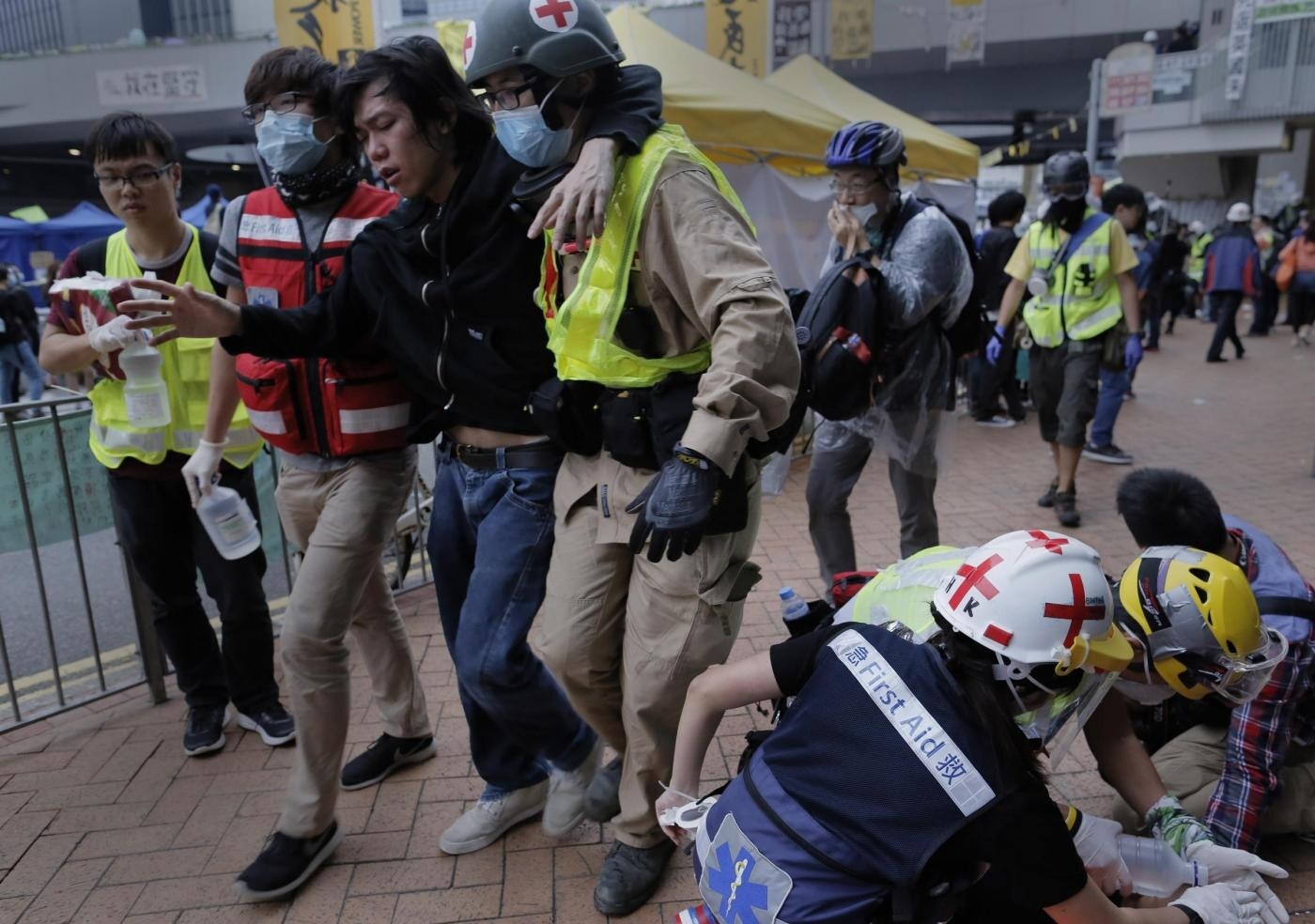Sono durati quasi 24 ore gli scontri tra i manifestanti pro-democrazia e la polizia di Hong Kong. Alla fine, solo in mattinata, gli agenti sono è riusciti a sgomberare i dimostranti dal tunnel Lung Wo e a rimuovere le tende dal Parco di Tamar, sotto agli uffici governativi. Quaranta persone sono state arrestate e si contano decine di feriti. La tensione però resta alta, con le strade aperte al traffico, ma gli edifici di governo tenuti a porte chiuse e i lavori del Consiglio legislativo sospesi. I disordini nel quartiere degli affari di Admiralty, sede principale delle manifestazioni del movimento che da oltre due mesi chiede a gran voce il suffragio universale. La polizia ha bloccato i due ponti che da Admiralty conducono agli uffici del Consiglio Legislativo. Domenica sera gli studenti avevano cercato di raggiungere la sede del parlamento, e questa azione ha provocato la controffensiva delle autorità. Gli agenti hanno usato manganelli e spray al peperoncino contro "I dimostranti sono andati ben oltre. Dopo ripetuti avvertimenti la polizia non ha avuto scelta", ha dichiarato il segretario per la sicurezza Lai Tung-Kwok. Ora la situazione è abbastanza calma. Gli agenti ora sono arrivati vicini al Lennon Wall, il muro ricoperto di post-it, messaggi e disegni di sostegno agli studenti divenuto uno dei simboli del Movimento degli Ombrelli. Gli studenti hanno deciso di innalzare una nuova barricata per ostacolare lo sgombero. Lunedì mattina, il Capo dell’Esecutivo Leung Chung-ying ha ripetuto che “la decisione di Pechino del 31 agosto non può essere in alcun modo modificata”