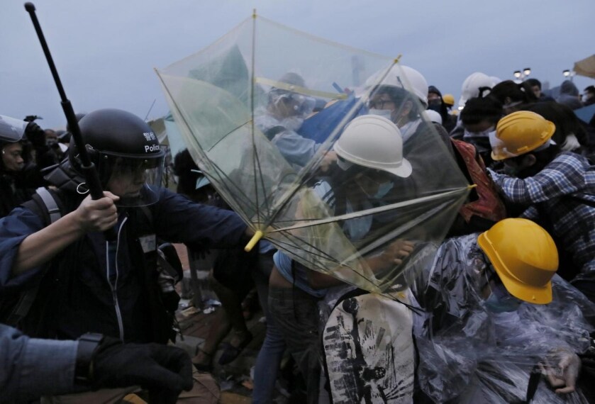 Sono durati quasi 24 ore gli scontri tra i manifestanti pro-democrazia e la polizia di Hong Kong. Alla fine, solo in mattinata, gli agenti sono è riusciti a sgomberare i dimostranti dal tunnel Lung Wo e a rimuovere le tende dal Parco di Tamar, sotto agli uffici governativi. Quaranta persone sono state arrestate e si contano decine di feriti. La tensione però resta alta, con le strade aperte al traffico, ma gli edifici di governo tenuti a porte chiuse e i lavori del Consiglio legislativo sospesi. I disordini nel quartiere degli affari di Admiralty, sede principale delle manifestazioni del movimento che da oltre due mesi chiede a gran voce il suffragio universale. La polizia ha bloccato i due ponti che da Admiralty conducono agli uffici del Consiglio Legislativo. Domenica sera gli studenti avevano cercato di raggiungere la sede del parlamento, e questa azione ha provocato la controffensiva delle autorità. Gli agenti hanno usato manganelli e spray al peperoncino contro "I dimostranti sono andati ben oltre. Dopo ripetuti avvertimenti la polizia non ha avuto scelta", ha dichiarato il segretario per la sicurezza Lai Tung-Kwok. Ora la situazione è abbastanza calma. Gli agenti ora sono arrivati vicini al Lennon Wall, il muro ricoperto di post-it, messaggi e disegni di sostegno agli studenti divenuto uno dei simboli del Movimento degli Ombrelli. Gli studenti hanno deciso di innalzare una nuova barricata per ostacolare lo sgombero. Lunedì mattina, il Capo dell’Esecutivo Leung Chung-ying ha ripetuto che “la decisione di Pechino del 31 agosto non può essere in alcun modo modificata”