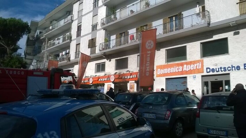 Il negozio Expert di via Michele Pietravalle, nel quartiere Vomero di Napoli completamente distrutto dalle fiamme. Sul posto sono intervenuti i vigili del fuoco con diverse squadre. Non si esclude la matrice dolosa dell'incendio. Foto di Francesco Emilio Borrelli.