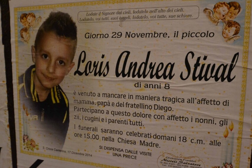 Addio al piccolo Loris Stival, strangolato con fascette da elettricista e poi gettato in un canalone nei pressi del Mulino Vecchio a Santa Croce Camerina. Assente ai funerali la madre Veronica Panarello; in lacrime il padre David Stival. Chiesa blindata, ingresso negato alle telecamere.