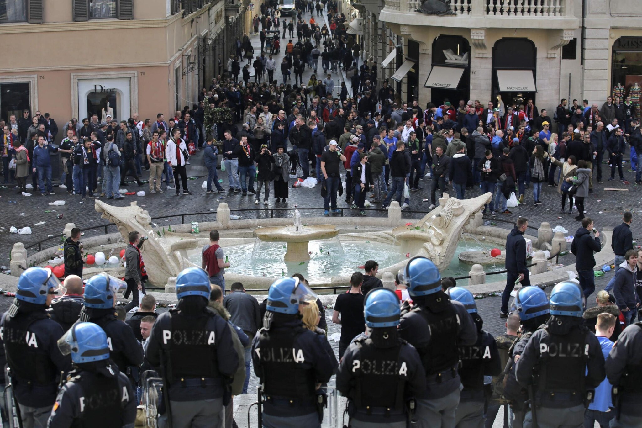 Piazza di Spagna devastata dai tifosi del Feyenoord