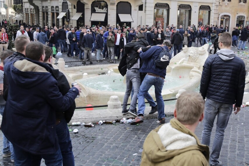 Piazza di Spagna devastata dai tifosi del Feyenoord