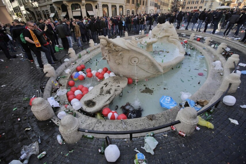 Piazza di Spagna devastata dai tifosi del Feyenoord