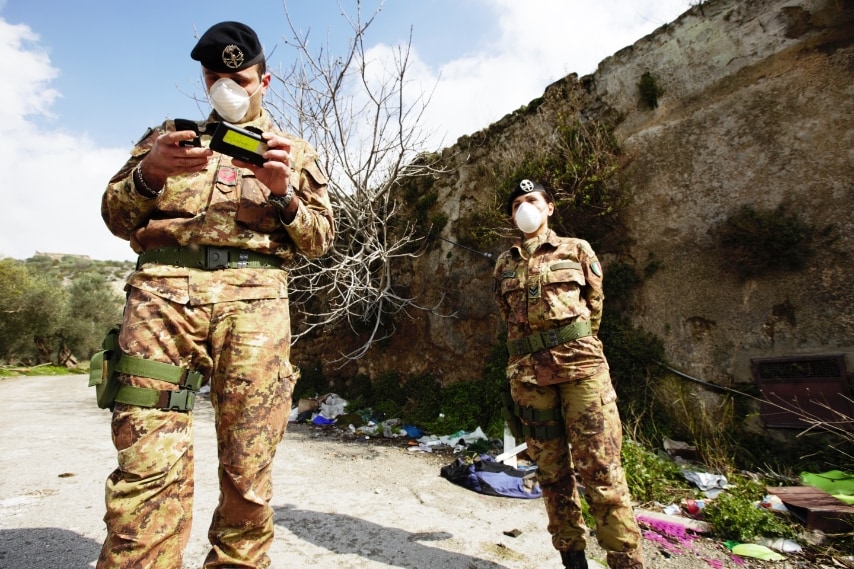 Gli uomini dell'Esercito per fermare i roghi tossici e gli sversamenti di rifiuti tossici, nella Terra dei Fuochi - tra le province di Napoli e Caserta. Si tratta di 88 Comuni rientranti nella legge sulla Terra dei Fuochi dove il Raggruppamento Campania, task force 21° Guastatori, sotto il comando del colonnello Ettore Motti, effettua pattugliamenti e appostamenti. Secondo i dati del commissario Donato Cafagna parlano di una diminuzione nell'ultimo anno del 60% dei rochi nella provincia di Caserta e del 40% in quella di Napoli. Fin'ora erano dispiegati soltanto 100 uomini, ma recentemente il Governo ha previsto il raddoppio delle forze impegnate nel contrasto all'economia illecita dei rifiuti.