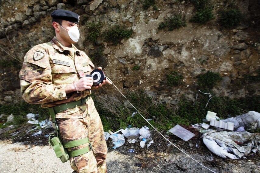 Gli uomini dell'Esercito per fermare i roghi tossici e gli sversamenti di rifiuti tossici, nella Terra dei Fuochi - tra le province di Napoli e Caserta. Si tratta di 88 Comuni rientranti nella legge sulla Terra dei Fuochi dove il Raggruppamento Campania, task force 21° Guastatori, sotto il comando del colonnello Ettore Motti, effettua pattugliamenti e appostamenti. Secondo i dati del commissario Donato Cafagna parlano di una diminuzione nell'ultimo anno del 60% dei rochi nella provincia di Caserta e del 40% in quella di Napoli. Fin'ora erano dispiegati soltanto 100 uomini, ma recentemente il Governo ha previsto il raddoppio delle forze impegnate nel contrasto all'economia illecita dei rifiuti.