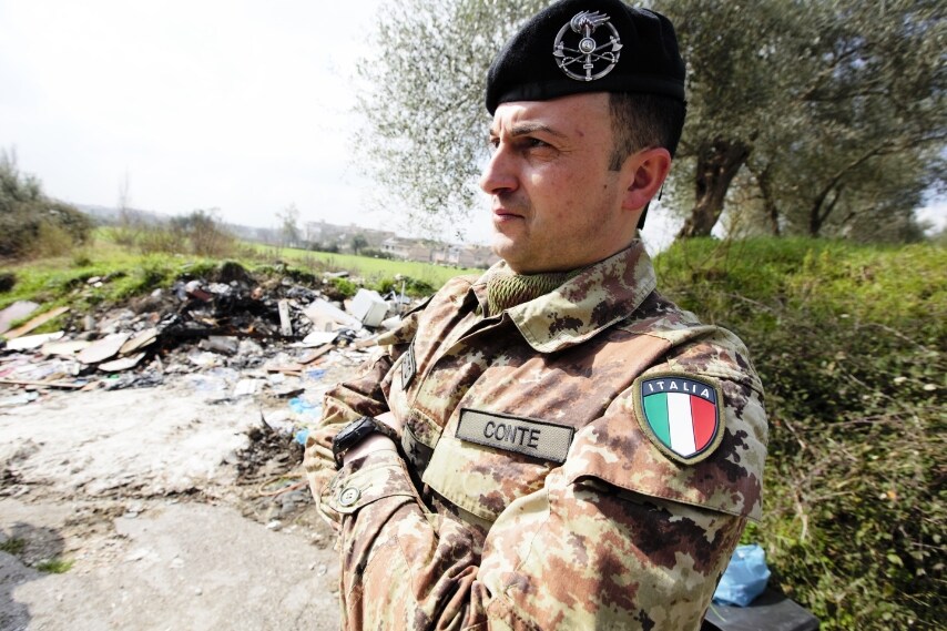 Gli uomini dell'Esercito per fermare i roghi tossici e gli sversamenti di rifiuti tossici, nella Terra dei Fuochi - tra le province di Napoli e Caserta. Si tratta di 88 Comuni rientranti nella legge sulla Terra dei Fuochi dove il Raggruppamento Campania, task force 21° Guastatori, sotto il comando del colonnello Ettore Motti, effettua pattugliamenti e appostamenti. Secondo i dati del commissario Donato Cafagna parlano di una diminuzione nell'ultimo anno del 60% dei rochi nella provincia di Caserta e del 40% in quella di Napoli. Fin'ora erano dispiegati soltanto 100 uomini, ma recentemente il Governo ha previsto il raddoppio delle forze impegnate nel contrasto all'economia illecita dei rifiuti.