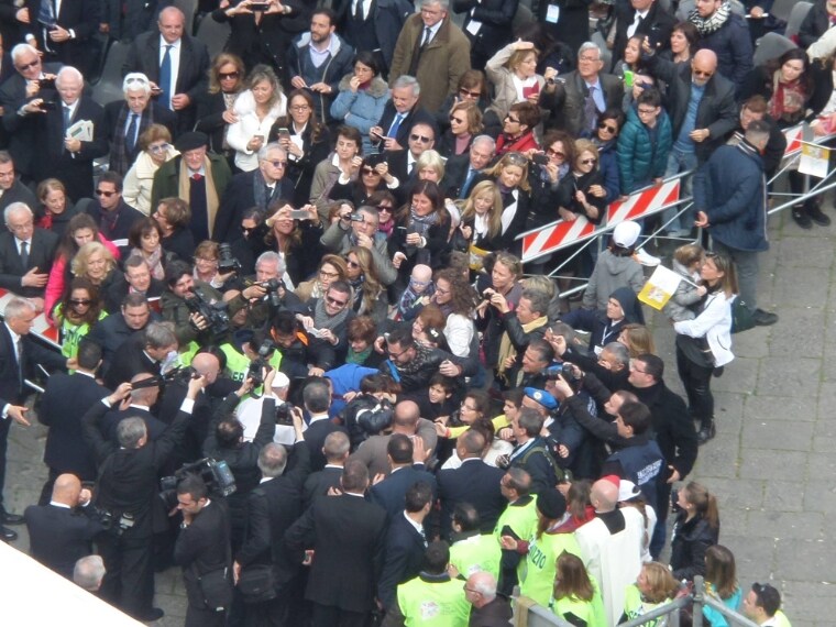 Durante la sua visita a Napoli, Papa francesco scende dalla Papamobile e si avvicina ai fedeli. Il Pontefice "rompe" così un protocollo di sicurezza organizzato da giorni, ma la sua voglia di avvicinarsi alle tantissime persone arrivate a Piazza Plebiscito lo ha spinto a fare questo gesto.