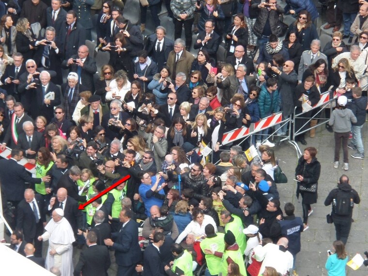 Durante la sua visita a Napoli, Papa francesco scende dalla Papamobile e si avvicina ai fedeli. Il Pontefice "rompe" così un protocollo di sicurezza organizzato da giorni, ma la sua voglia di avvicinarsi alle tantissime persone arrivate a Piazza Plebiscito lo ha spinto a fare questo gesto.