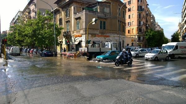 Piazza della Marranella, nel quartiere romano di Torpignattara oggi pomeriggio si è completamente allagata a causa della rottura di un tubo dell'acqua. Strade chiuse e traffico in tilt.