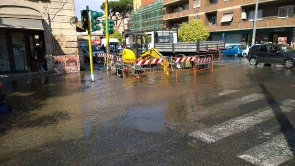 Roma, allagata per un tubo rotto piazza della Marranella