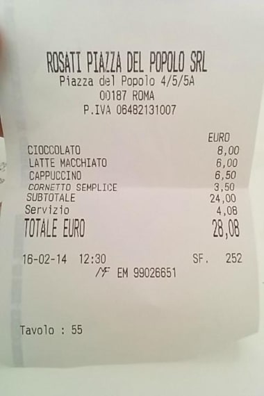 Molti commentatori 'scontenti' del celebre bar Rosati di Roma hanno pubblicato su Tripadvisor gli scontrini più "salati". Eccoli.