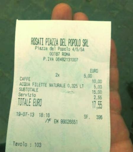 Molti commentatori 'scontenti' del celebre bar Rosati di Roma hanno pubblicato su Tripadvisor gli scontrini più "salati". Eccoli.