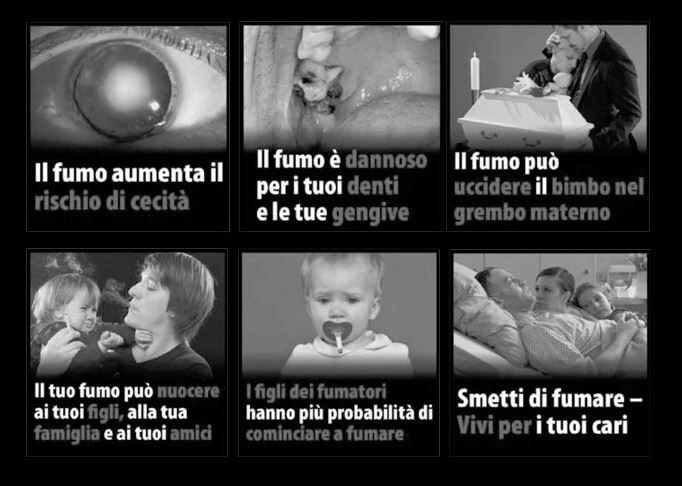 Le immagini shock che verranno stampate sui pacchetti di sigarette