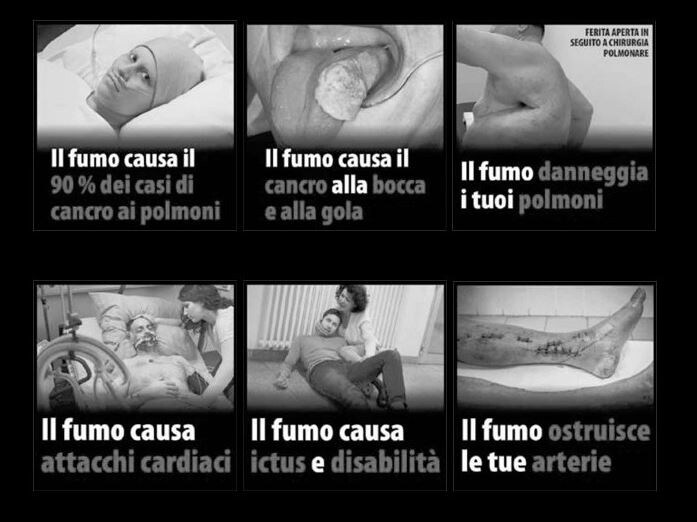 Ecco le immagini che verranno stampate su tutti i pacchetti di sigarette a partire dal 2 febbraio.