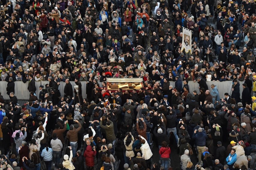 Verso le 17 di venerdì 5 febbraio, il corteo con la salma di Pade Pio è arrivato in piazza San Pietro. Alla processione erano presenti circa 20mila fedeli. Domani in piazza si terrà un'udienza speciale di Papa Francesco.
