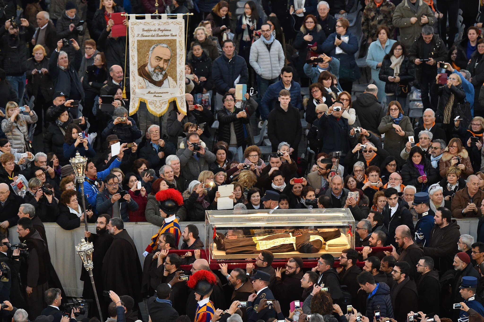 Verso le 17 di venerdì 5 febbraio, il corteo con la salma di Pade Pio è arrivato in piazza San Pietro. Alla processione erano presenti circa 20mila fedeli. Domani in piazza si terrà un'udienza speciale di Papa Francesco.