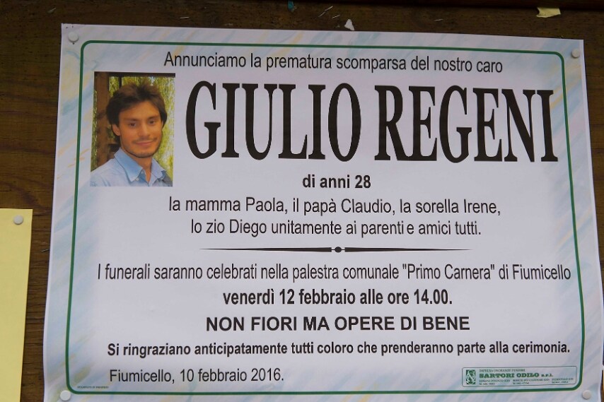 I funerali di Giulio Regeni, il ricercatore 28enne ucciso al Cairo, a Fiumicello (Udine)