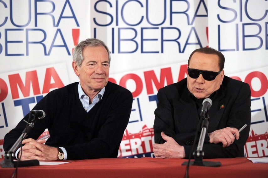 Conferenza stampa a Roma per il candidato di Forza Italia al Campidoglio Guido Bertolaso, in compagnia di Silvio Berlusconi che indossa un paio di occhiali da sole neri a causa di un'operazione ad un occhio.