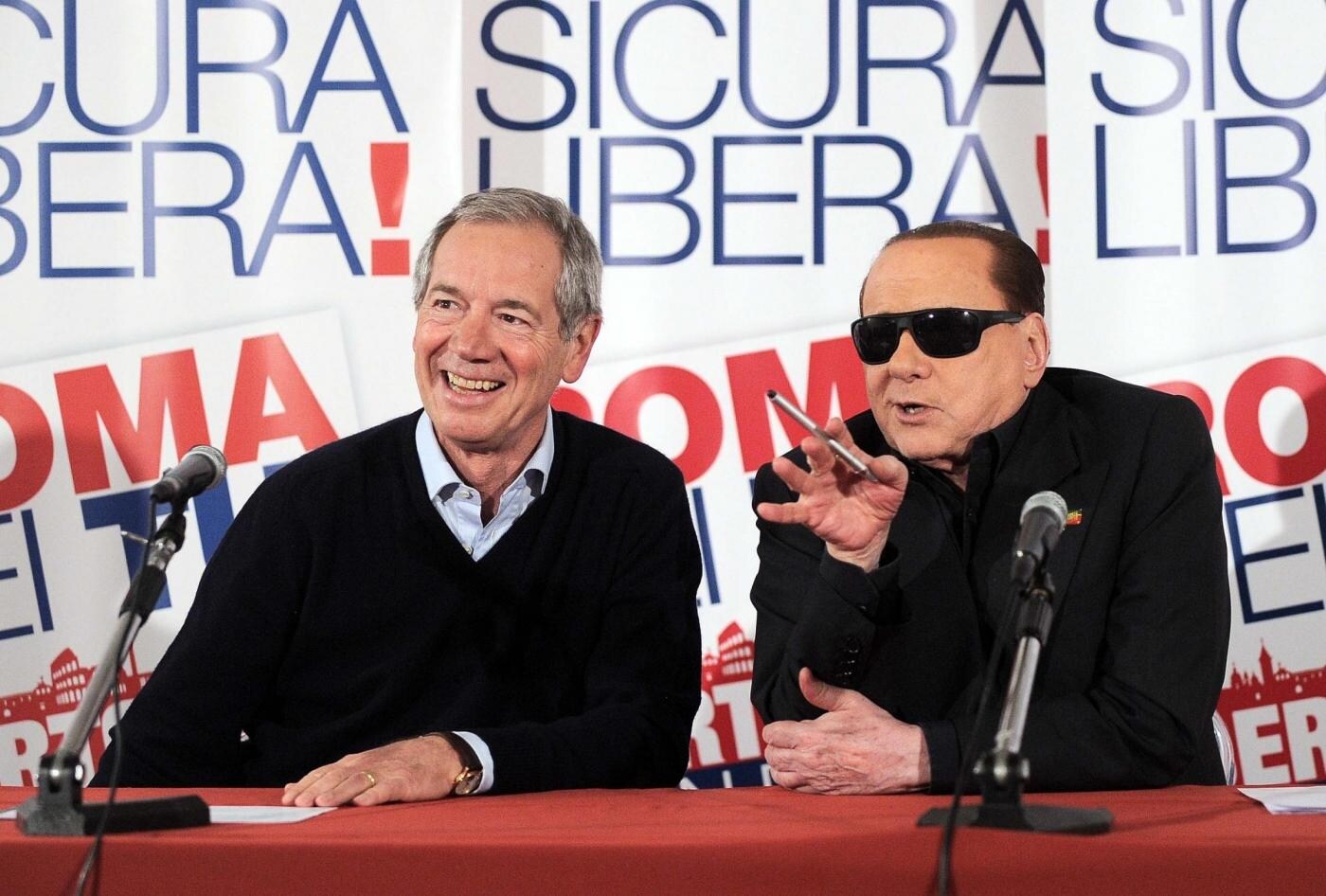 Conferenza stampa a Roma per il candidato di Forza Italia al Campidoglio Guido Bertolaso, in compagnia di Silvio Berlusconi che indossa un paio di occhiali da sole neri a causa di un'operazione ad un occhio.