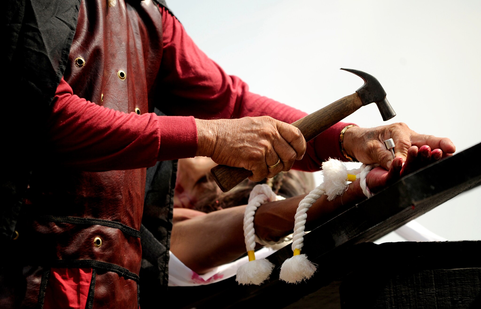 Sulla croce trafitto da chiodi veri, la rappresentazione realistica della crocifissione