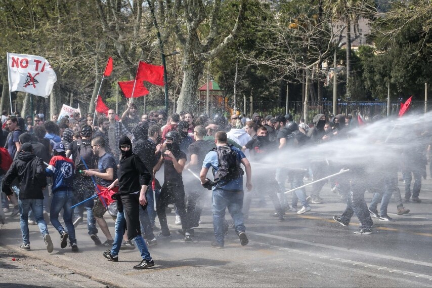 Centri sociali in corteo a Napoli per manifestare contro Matteo Renzi in visita in città per la cabina di regia a Bagnoli: un Pinocchio di cartapesta, Pulcinella col mandolino cartelli e tanti slogan: sembrava una manifestazione puramente all'insegna dell'ironia e dello sberleffo. Sul lungomare Caracciolo, invece, duri scontri con le forze dell'ordine: 4 agenti feriti.
