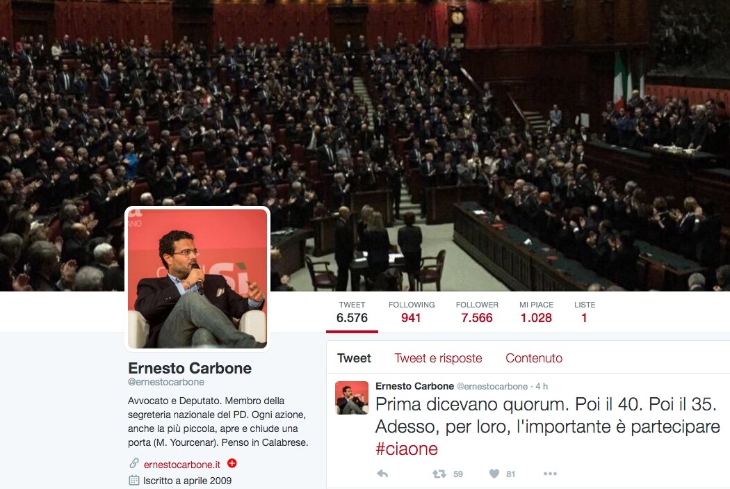 Ernesto Carbone, avvocato e deputato, membro della segreteria nazionale del PD, si scaglia contro i votanti al referendum dal suo account Twitter. Ecco cosa ha scritto l'onorevole sul social.