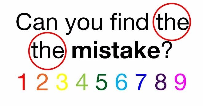 Quest'immagine è stata progettata per testare la percezione visiva: c'è un errore in foto ma molti utenti, piuttosto che guardare la ripetizione "the" nella domanda posta in inglese: "Can you find the mistake" (Riesci a trovare l'errore), hanno rivolto erroneamente la propria attenzione ai numeri.