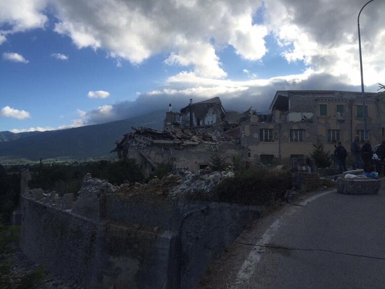 Le prime immagini che arrivano da Amatrice (Rieti), il comune vicinissimo all'epicentro del sisma di questa notte. Almeno 5 i morti, si scava tra le macerie.