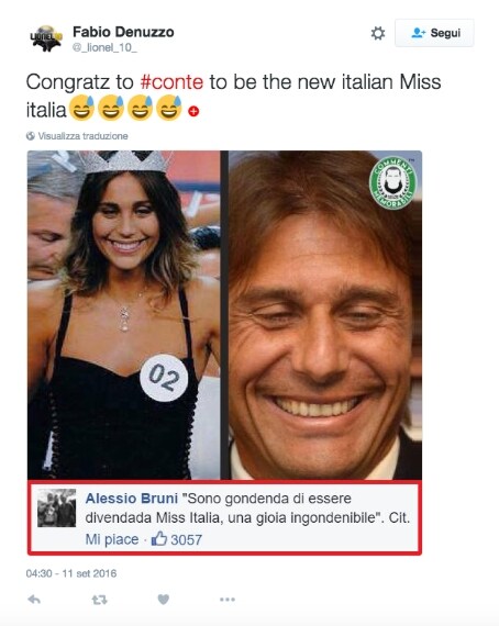 Il sorriso di Miss Italia e Antonio Conte: i più bei meme sul web