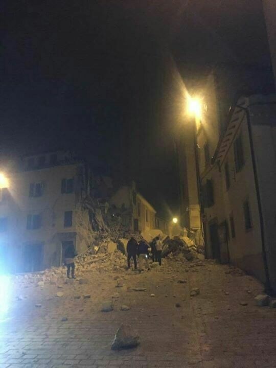 Le immagini drammatiche da Camerino, in provincia di Macerata, dopo la violenta scossa di terremoto. Distrutto il centro storico, crollato anche il campanile.