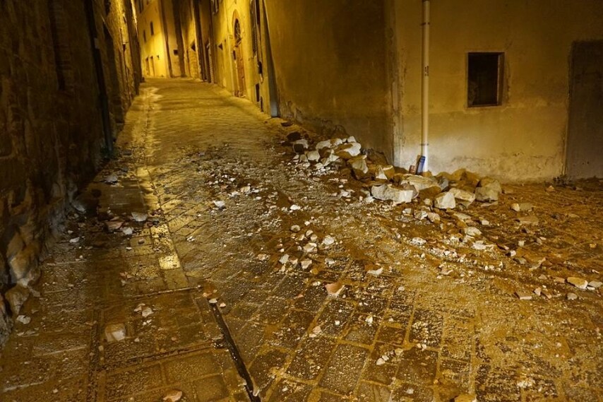 Le immagini drammatiche da Camerino, in provincia di Macerata, dopo la violenta scossa di terremoto. Distrutto il centro storico, crollato anche il campanile.