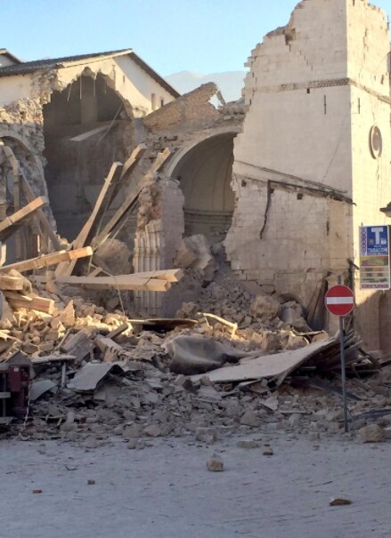 Parte di Norcia è andata completamente distrutta, come testimoniano alcuni scatti fatti dai cittadini e pubblicati sui social network. Crollata gran parte della chisa di San Benedetto da Norcia e altri edifici del centro storico.