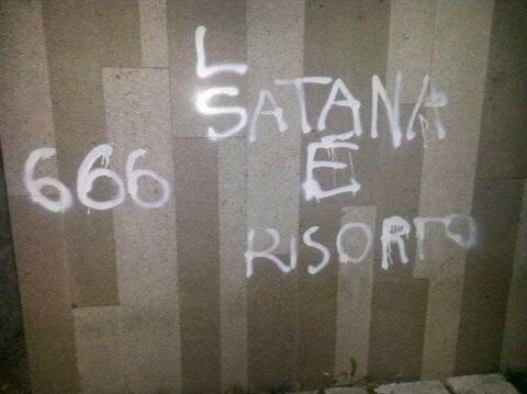 Blasfemie, scritte volgari e inni a Satana al cimitero di Auronzo di Cadore, in Veneto. Come scrive oggi il Gazzettino in molti si chiedono se si tratti effettivamente di un inno al culto del maligno o, forse solo, dell'ignoranza di un gruppo di ragazzini. Quest'ultima ipotesi è quella più accredita secondo il parroco locale. Le foto sono state scattate ieri da un cittadino e quindi girate all'assessore allo sport e al sociale Lorenzo De Martin che ha voluto subito renderle pubbliche per denunciare la gravità del fatto.