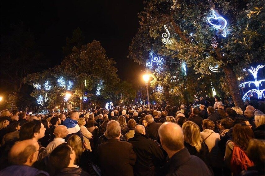 Inaugurata sabato 5 l'edizione 2016 delle luci d'artista a Salerno. Tra i presenti anche l'attore Rocco Papaleo. Due le novità di quest'anno:“Il Cielo Stellato” e la ruota panoramica sul lungomare. (foto Facebook/comune di salerno - Massimo Pica e da facebook.com/lucidartistacomunesalerno)