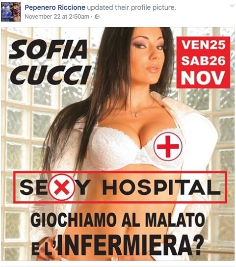 Anche la Federazione Nazionale Infermieri si scaglia contro il locale Pepenero di Riccione, dopo il manifesto mostrato per lo show in programma con delle "infermiere sexy". tra le star della serata l'attrice porno Sofia Cucci, che sul manifesto si mostra "vestita" in intimo provocante. A lanciare la prima ondata di indignazione, sono stati i tanti utenti di Facebook che sulla pagina del locale hanno mostrato il loro dissenso verso la scelta. Poi anche l'Ipasvi di Pesaro-Urbino e la FNI si sono scagliati contro con una nota ufficiale: "Nel giorno della massima attenzione sul ruolo della #donna e sulle violenze cui è sottoposta, c'è chi ancora gioca sullo stereotipo dell'infermiera sexy. Anche questa è violenza, mancanza di rispetto per la dignità professionale. Il Collegio Ipasvi di Pesaro-Urbino ha chiesto ai sindaci dei territori interessati l'immediata rimozione di questo manifesto".