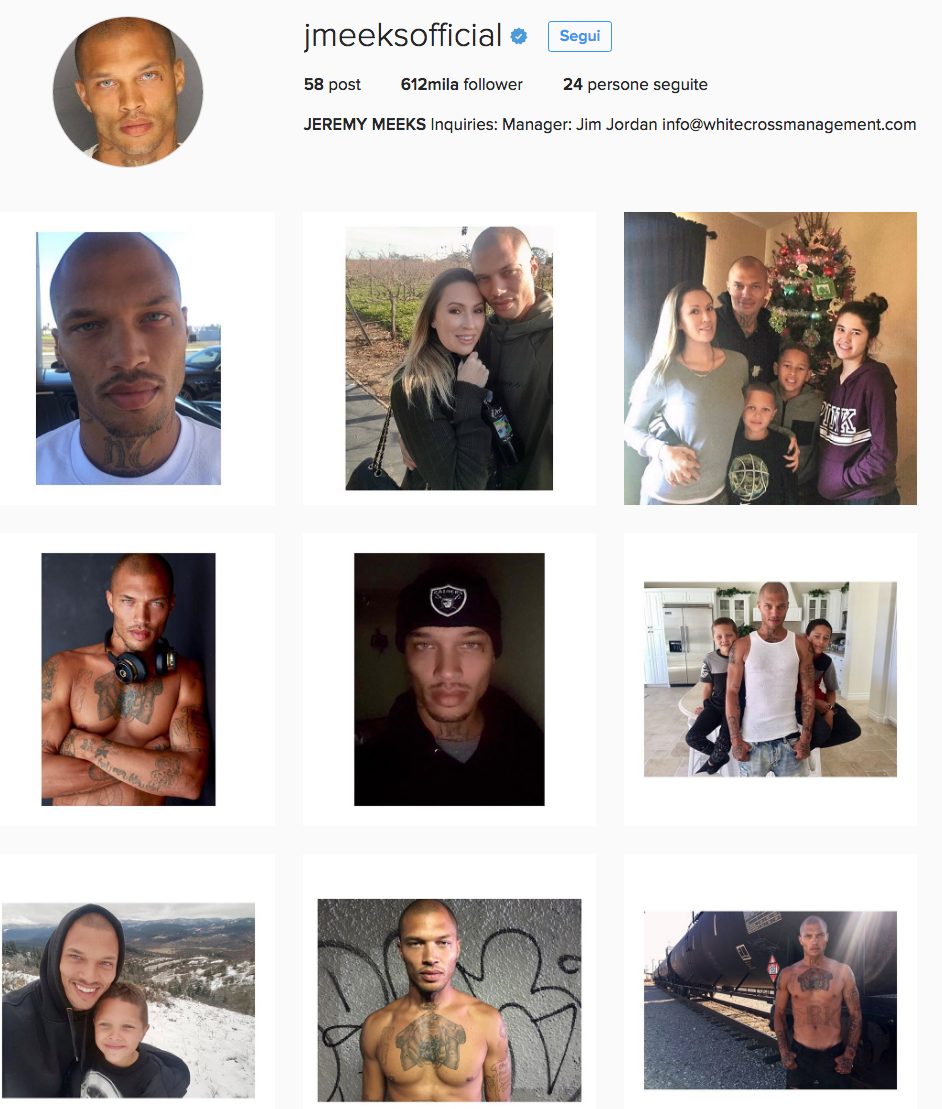 I suoi occhi glaciali e il fisico scolpito avevano attirato l'attenzione di molte persone nei mesi scorsi, tanto da guadagnarsi anche un contratto come modello dopo essere uscito di prigione. Così Jeremy Meeks è divenuto una vera e propria icona, tanto da aprire un profilo Instagram con migliaia di followers. Per le festività natalizie le foto con famiglia e i festeggiamenti per l'ottavo anniversario con la compagna.