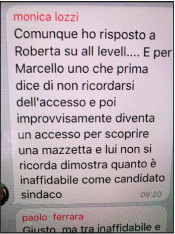 Il sito Affari Italiani ha reso noto il contenuto della chat dove si organizza la 'congiura' contro Marcello De Vito, il principale concorrente di Virginia Raggi per la corsa al Campidoglio. Accuse mosse in base a un dossier dopo rivelatosi falso. La deputata Roberta Lombardi, a cui De Vito fa riferimento, ha dichiarato in procura che il dossier sarebbe stato compilato dall'ex braccio destro della sindaca Raffaele Marra in carcere per corruzione.